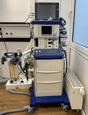 Narkosegerät mit aufgesetztem Monitor zur Durchführung einer Inhalationsnarkose und lückenlosen Patientenüberwachung